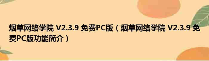 导读 大家好,关于烟草网络学院 V2 3 9 免费PC版,烟草网络学院 V2 3 9 免费PC版功能简介这个很多人还不知道,小勒来为大家解答以上的问题,现