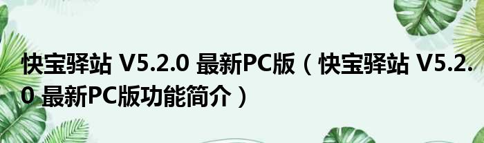 快宝驿站 V5.2.0 最新PC版(快宝驿站 V5.2.0 最新PC版功能简介)