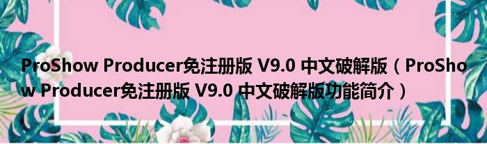 ProShow Producer免注册版 V9.0 中文破解版(ProShow Producer免注册版 V9.0 中文破解版功能简介)