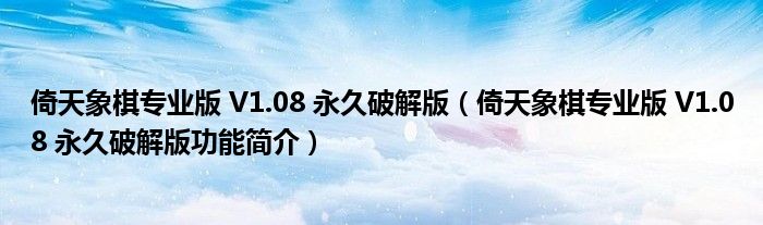 倚天象棋专业版 V1.08 永久破解版(倚天象棋专业版 V1.08 永久破解版功能简介)