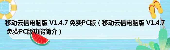 移动云信电脑版 V1.4.7 免费PC版(移动云信电脑版 V1.4.7 免费PC版功能简介)