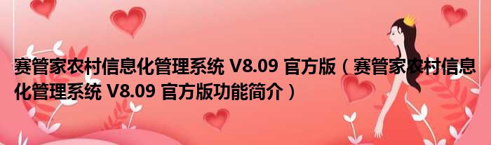 赛管家农村信息化管理系统 V8.09 官方版(赛管家农村信息化管理系统 V8.09 官方版功能简介)