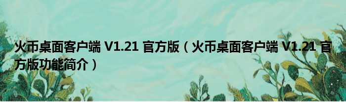 导读 大家好,关于火币桌面客户端 V1 21 官方版,火币桌面客户端 V1 21 官方版功能简介这个很多人还不知道,小勒来为大家解答以上的问题,现在