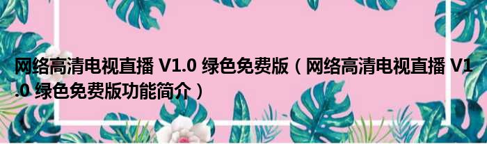 网络高清电视直播 V1.0 绿色免费版(网络高清电视直播 V1.0 绿色免费版功能简介)