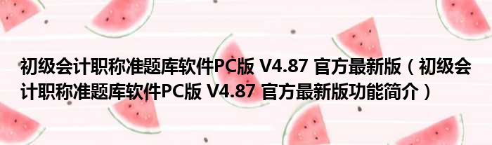 初级会计职称准题库软件PC版 V4.87 官方最新版(初级会计职称准题库软件PC版 V4.87 官方最新版功能简介)