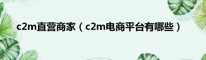 大家好,今天小六子来为大家解答以下的问题,关于c2m直营商家,c2m电商平台有哪些这个很多人还不知道,现在让我们一起来看看吧!