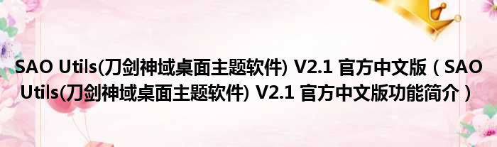 SAO Utils(刀剑神域桌面主题软件) V2.1 官方中文版(SAO Utils(刀剑神域桌面主题软件) V2.1 官方中文版功能简介)