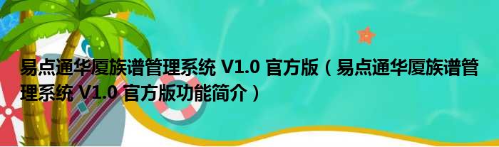 易点通华厦族谱管理系统 V1.0 官方版(易点通华厦族谱管理系统 V1.0 官方版功能简介)