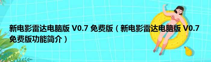 新电影雷达电脑版 V0.7 免费版(新电影雷达电脑版 V0.7 免费版功能简介)