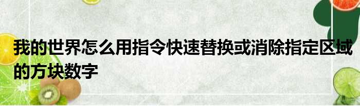 导读 大家好,今天小六子来为大家解答以下的问题,关于我的世界怎么用指令快速替换或消除指定区域的方块数字这个很多人还不知道,现在让我们一起