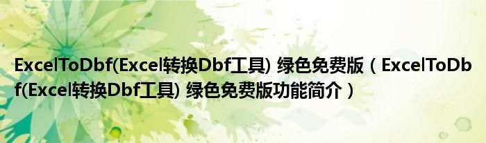 导读 大家好,关于ExcelToDbf(Excel转换Dbf工具) 绿色免费版,ExcelToDbf(Excel转换Dbf工具) 绿色免费版功能简介这个很多人还不知道,小勒来为大