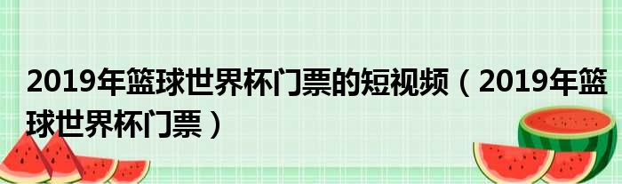 2019年篮球世界杯门票的短视频(2019年篮球世界杯门票)