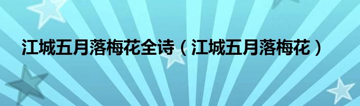 大家好,今天小六子来为大家解答以下的问题,关于江城五月落梅花全诗,江城五月落梅花这个很多人还不知道,现在让我们一起来看看吧!