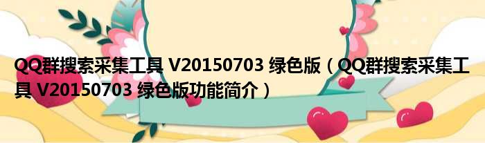 导读 大家好,关于QQ群搜索采集工具 V20150703 绿色版,QQ群搜索采集工具 V20150703 绿色版功能简介这个很多人还不知道,小勒来为大家解答以上