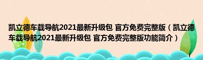凯立德车载导航2021最新升级包 官方免费完整版(凯立德车载导航2021最新升级包 官方免费完整版功能简介)