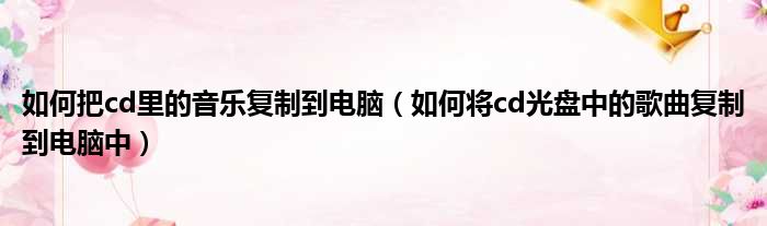 如何把cd里的音乐复制到电脑(如何将cd光盘中的歌曲复制到电脑中)