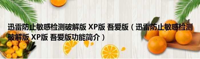 迅雷防止敏感检测破解版 XP版 吾爱版(迅雷防止敏感检测破解版 XP版 吾爱版功能简介)