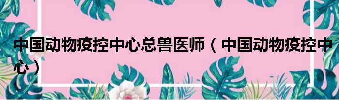 中国动物疫控中心总兽医师(中国动物疫控中心)