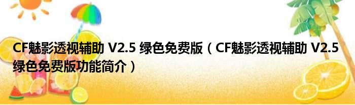 CF魅影透视辅助 V2.5 绿色免费版(CF魅影透视辅助 V2.5 绿色免费版功能简介)