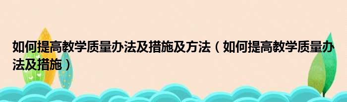 如何提高教学质量办法及措施及方法(如何提高教学质量办法及措施)