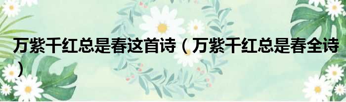 万紫千红总是春这首诗(万紫千红总是春全诗)