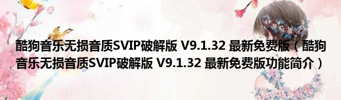酷狗音乐无损音质SVIP破解版 V9.1.32 最新免费版(酷狗音乐无损音质SVIP破解版 V9.1.32 最新免费版功能简介)