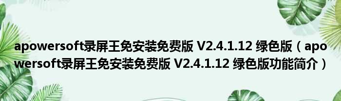 apowersoft录屏王免安装免费版 V2.4.1.12 绿色版(apowersoft录屏王免安装免费版 V2.4.1.12 绿色版功能简介)