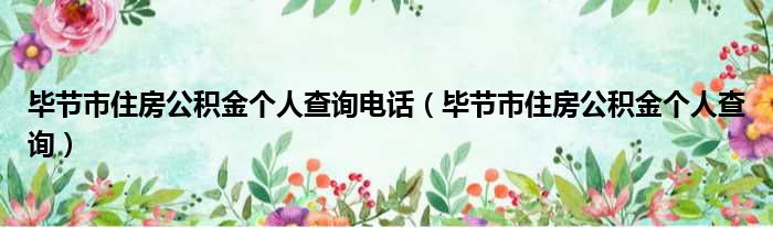 毕节市住房公积金个人查询电话(毕节市住房公积金个人查询)