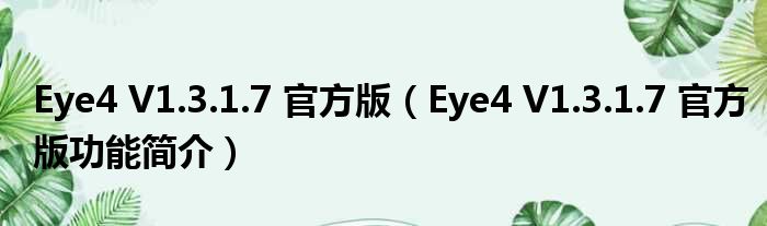 Eye4 V1.3.1.7 官方版(Eye4 V1.3.1.7 官方版功能简介)