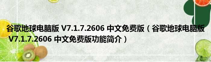 谷歌地球电脑版 V7.1.7.2606 中文免费版(谷歌地球电脑版 V7.1.7.2606 中文免费版功能简介)