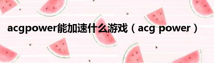 acgpower能加速什么游戏(acg power)