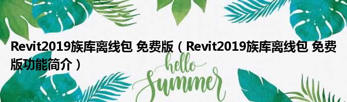 Revit2019族库离线包 免费版(Revit2019族库离线包 免费版功能简介)