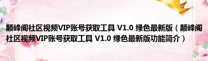 导读 大家好,关于颠峰阁社区视频VIP账号获取工具 V1 0 绿色最新版,颠峰阁社区视频VIP账号获取工具 V1 0 绿色最新版功能简介这个很多人还不