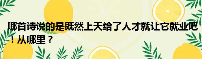 哪首诗说的是既然上天给了人才就让它就业吧!从哪里?