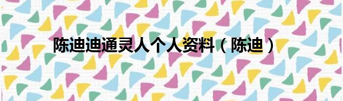 大家好,今天小六子来为大家解答以下的问题,关于陈迪迪通灵人个人资料,陈迪这个很多人还不知道,现在让我们一起来看看吧!
