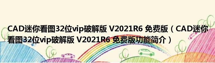 CAD迷你看图32位vip破解版 V2021R6 免费版(CAD迷你看图32位vip破解版 V2021R6 免费版功能简介)