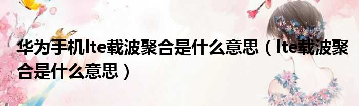 华为手机lte载波聚合是什么意思(lte载波聚合是什么意思)