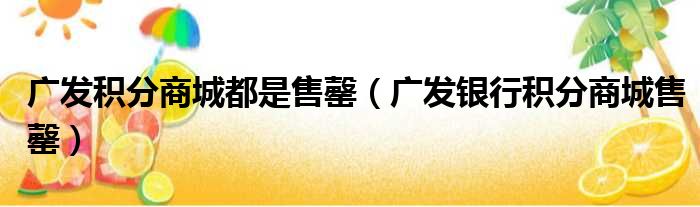 广发积分商城都是售罄(广发银行积分商城售罄)
