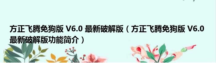 方正飞腾免狗版 V6.0 最新破解版(方正飞腾免狗版 V6.0 最新破解版功能简介)
