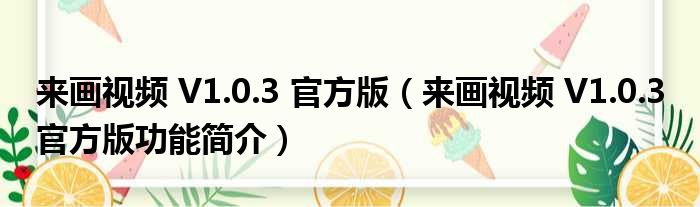 来画视频 V1.0.3 官方版(来画视频 V1.0.3 官方版功能简介)