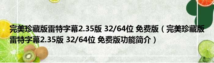 完美珍藏版雷特字幕2.35版 32/64位 免费版(完美珍藏版雷特字幕2.35版 32/64位 免费版功能简介)