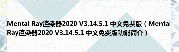 Mental Ray渲染器2020 V3.14.5.1 中文免费版(Mental Ray渲染器2020 V3.14.5.1 中文免费版功能简介)