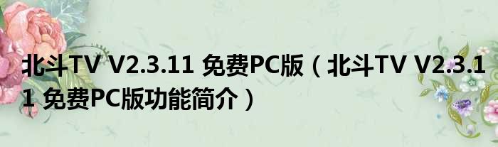 北斗TV V2.3.11 免费PC版(北斗TV V2.3.11 免费PC版功能简介)