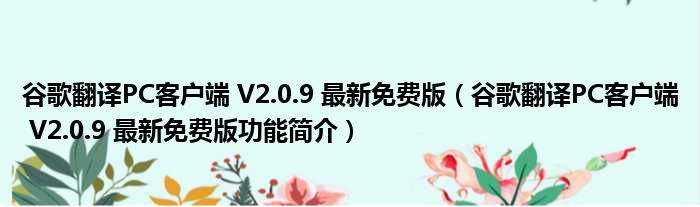 谷歌翻译PC客户端 V2.0.9 最新免费版(谷歌翻译PC客户端 V2.0.9 最新免费版功能简介)