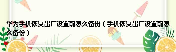 华为手机恢复出厂设置前怎么备份(手机恢复出厂设置前怎么备份)