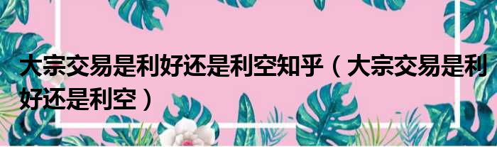 导读 大家好,今天小六子来为大家解答以下的问题,关于大宗交易是利好还是利空知乎,大宗交易是利好还是利空这个很多人还不知道,现在让我们一起
