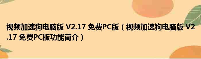 视频加速狗电脑版 V2.17 免费PC版(视频加速狗电脑版 V2.17 免费PC版功能简介)