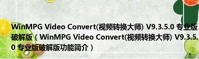WinMPG Video Convert(视频转换大师) V9.3.5.0 专业版破解版(WinMPG Video Convert(视频转换大师) V9.3.5.0 专业版破解版功能简介)