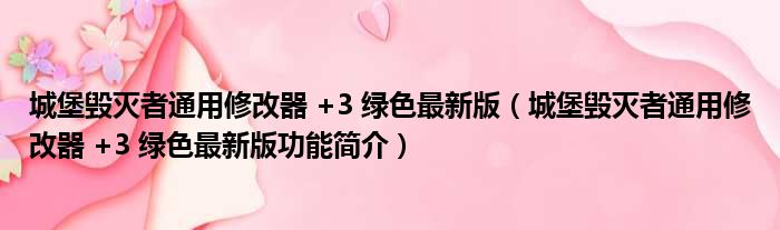 导读 大家好,关于城堡毁灭者通用修改器 +3 绿色最新版,城堡毁灭者通用修改器 +3 绿色最新版功能简介这个很多人还不知道,小勒来为大家解答以