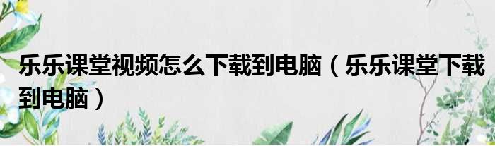 乐乐课堂视频怎么下载到电脑(乐乐课堂下载到电脑)